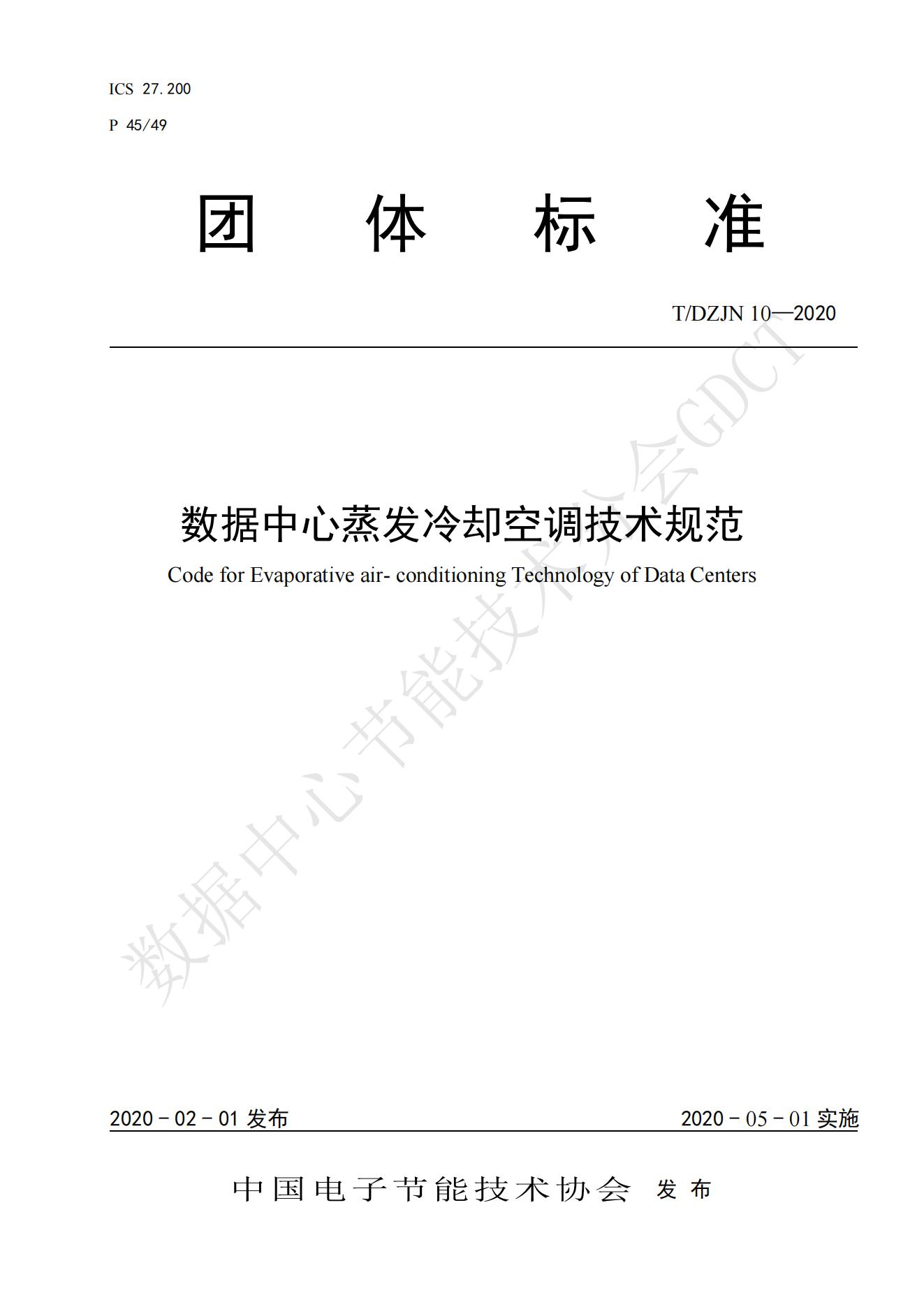 T∕DZJN 10-2020数据中心蒸发冷却空调技术规范