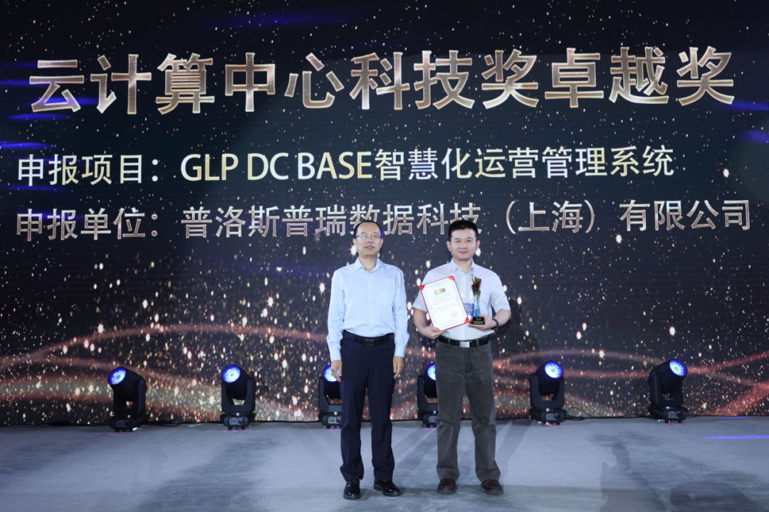 2023年8月9日在数据中心市场年会上举行了2023年度“云计算中心科技奖”颁奖典礼,普洛斯普瑞数据科技(上海)有限公司申报的“GLP DCBASE智慧化运营管理系统”在众多申报材料中脱颖而出,荣获“云计算中心科技奖”卓越奖。该奖项由国家科学技术奖励工作办公室审核并备案(奖励编号:0319),旨在奖励绿色云计算中心中应用的科技创新成果和科技创新产品为经济社会发展和国家节能减排事业做出的重要贡献。鼓励企业和个人自主创新和攀登科学技术高峰,从而推动云计算中心科技成果的产业化转化,促进云计算中心产业绿色、高效地发展。